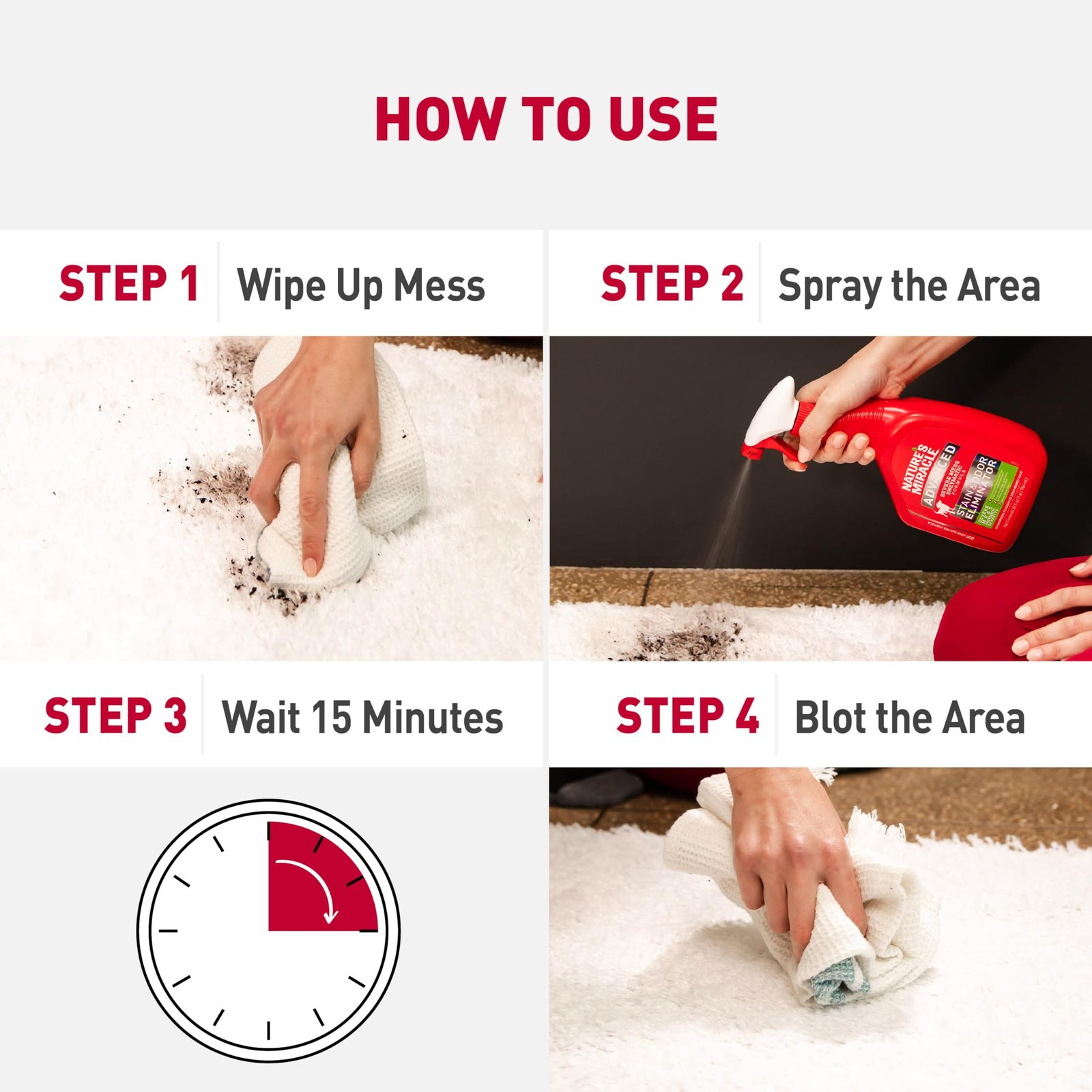 Nature’s Miracle Advanced Stain and Odor Eliminator Dog Spray, Fresh Scent, Severe Mess Enzymatic Formula for Tough Pet Messes, 32 Ounces,red