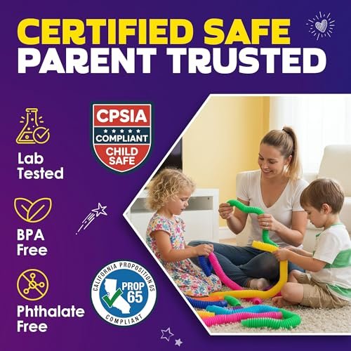 - 💪 SUPERIOR & HIGH QUALITY; The colorful pop tubes are built with the highest quality BPA & LEAD FREE PLASTIC to the highest quality standards you should expect and are designed to withstand a ton of fidgeting, popping, stretching, pulling or bending thanks to DURABLE & THICK YET FLEXIBLE MATERIAL; Careful inspection of each tube guarantees CHILD FRIENDLY EDGES, making sure you won’t get scratched in any sharp corners; Amazing Games & Stocking Stuffers.