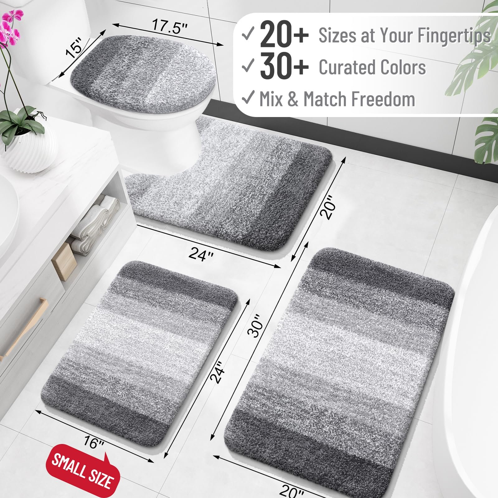 - [Easy to Clean & Care] Our bathroom mats are machine washable for simple upkeep when needed. Wash them in cold water on a gentle cycle, without using chlorine or bleach. For best results, tumble dry on low heat or air dry. To maintain the color and texture, avoid frequent machine washing.