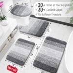 - [Matching Collection, Beautiful DΓ©cor & Versatile] Elevate your bathroom decor with our elegant gradient color stripe mats, ideal for sinks, showers, and beyond. Coordinate with matching toilet lid covers and contour rugs for added warmth and style. Complete the ensemble with our complementing shower curtains. Perfect for enhancing your own space with sophistication.