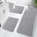 OLANLY Bathroom Rugs Sets 3 Piece, Soft Absorbent Chenille Bath Mats and U-Shaped Contour Toilet Rug, Quick Dry, Home Decor Accessories, Bath Mat Set for Bathroom (47"x20"+24"x16"+24"x20", Grey)