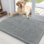 OLANLY Dog Door Mat for Muddy Paws 36x24, Absorbs Moisture and Dirt, Absorbent Non-Slip Washable Doormat, Quick Dry Chenille Mud Mat for Dogs, Entry Indoor Entryway Carpet for Inside Floor, Grey