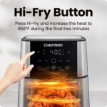 BRING THE HEAT: The Chefman air fryer cranks up the temperature to 450Β°F for the final two minutes of cooking. Our HI-FRY button puts a beautiful golden-brown crisp on air fried potatoes and chicken.
