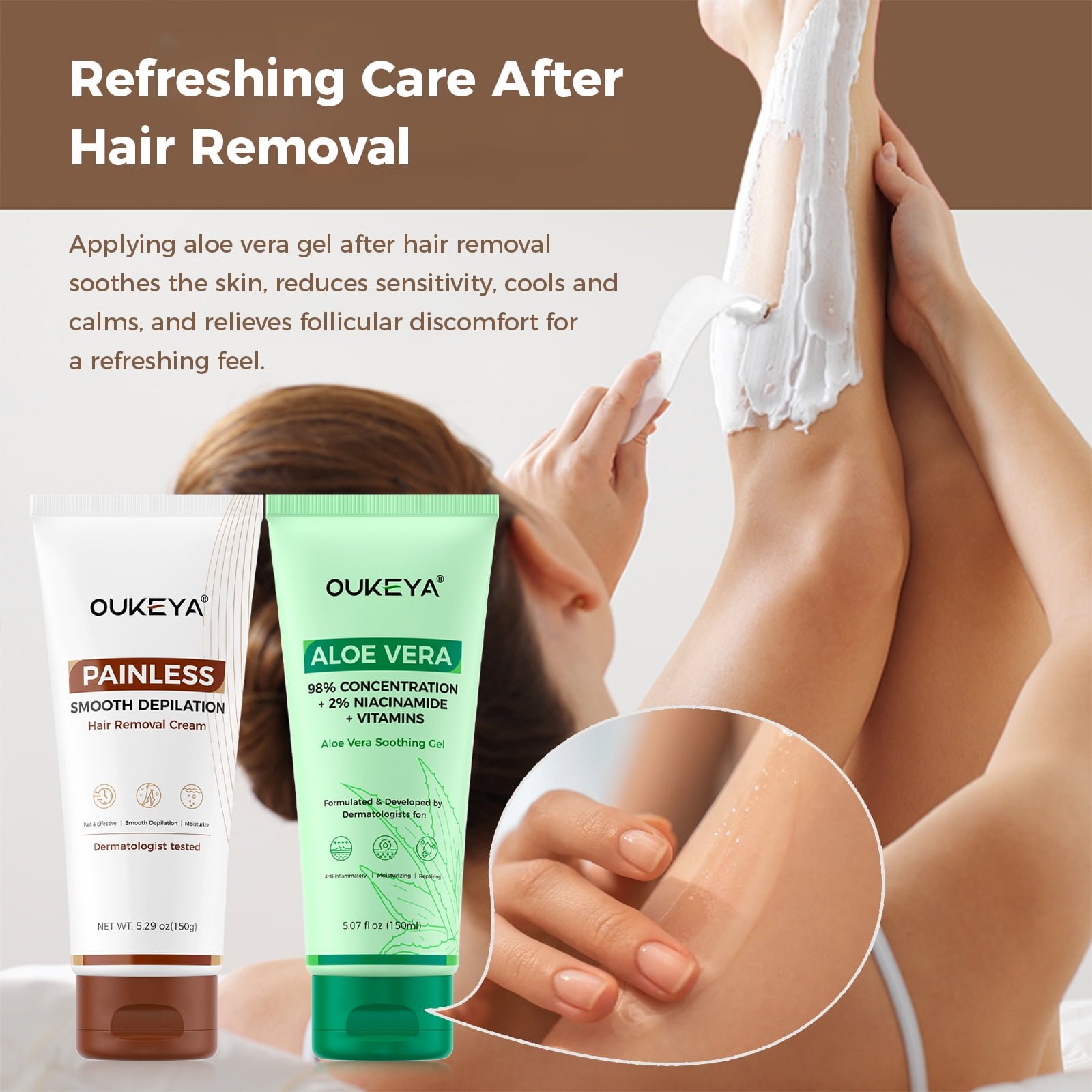 Dermatologically tested, OUKEYA’s hair removal cream is designed to provide a painless and safe hair removal experience.