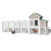 This Pefilos rabbit hutch is perfect for keeping small animals like rabbits in your backyard. It features a 2-layer design, raised perch, ramp, removable dropping tray, and outdoor run with durable fencing wiring.