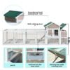 Looking for the perfect rabbit hutch? Look no further than Pefilos’s deluxe wooden hutch! This bunny hutch, featuring a two-layer design, offers a large and comfortable living space for small animals, particularly rabbits. Perfect for playing, exercising, and keeping your pets safe, this chicken coop is made of solid painted fir wood for durability and safety. The asphalt roof protects your furry friends from harsh weather conditions while the raised perch keeps them warm and dry, especially during the rainy season. Both side of the hen house are equipped with ramps, making it easy for your pets to go in and out. Easy to Maintain, this pet cage includes a removable droppings tray for convenient cleaning. The outdoor run, which features durable fencing wiring, ensures your pet enjoys sufficient ventilation while being protected from predators. The Sliding door separates the rest area and paly area and keeps your pets safe at night. Lockable doors provide added security while allowing you to easily take your pets in and out. Include large nesting box, resting area with a ramp to running area, provides a ample space for your chickens, ducks, rabbits and other small animals to rest and play. The nesting box has a strong lock to prevent your pet from other wolf, fox. Assembly is a breeze with all the necessary hardware included. Important Note: We recommend placing the rabbit house under shelter to ensure longer life for your furry friend’s home.