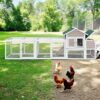 This Pefilos rabbit hutch is perfect for keeping small animals like rabbits in your backyard. It features a 2-layer design, raised perch, ramp, removable dropping tray, and outdoor run with durable fencing wiring.