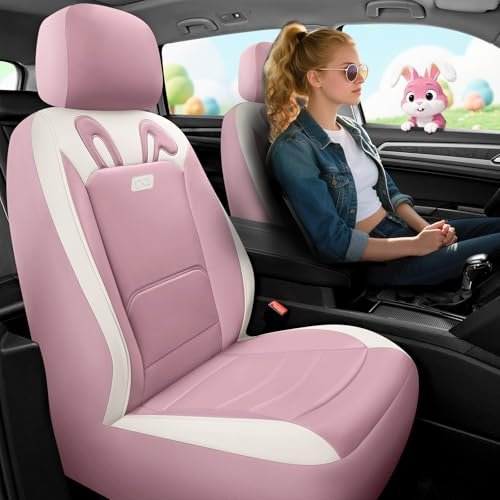 - PREMIUM MATERIALS – Adorable rabbit embroidery on high-quality PU leather combines soft comfort with durable, wear-resistant protection. Shields car seats from scratches, spills, stains, and daily wear, making it a perfect car seat protector and stylish auto interior accessory.
