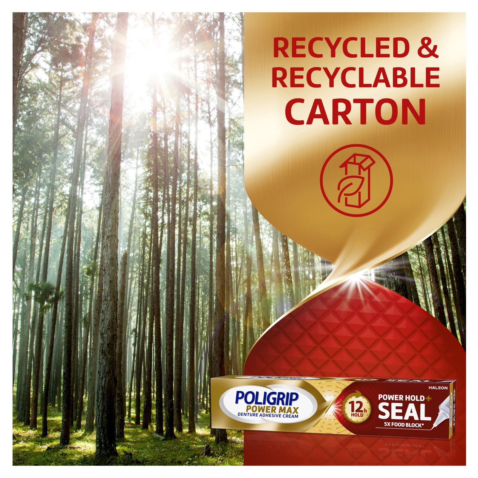 Poligrip Power Max Power Hold + Seal Denture Adhesive Cream gives your dentures the strongest all day hold with 5x the protective food seal (1, 2). Even well-fitting dentures are susceptible to food particles that can cause discomfort and gum irritation. This Poligrip denture adhesive cream is 16x clinically proven and delivers the strongest hold (2) and features a precision nozzle that enables the denture cream to deliver an all-around seal to help keep food from getting stuck under your dentures. This denture adhesive is formulated to be flavor free. The smaller tube size is perfect for tucking in your travel bag or purse for on-the-go use. Just apply a small amount of dental adhesive to clean, dry, well-fitting dentures once daily as part of your dental care routine for 12-hour hold. Poligrip Power Max dental adhesive creates a layer between your dentures and gums for a comfortable fit and strong, all-day hold, allowing you to eat, speak and smile with confidence. (1) versus no adhesive (2) within Poligrip range