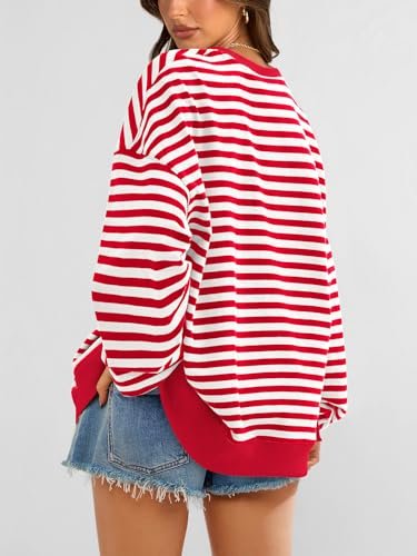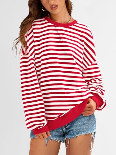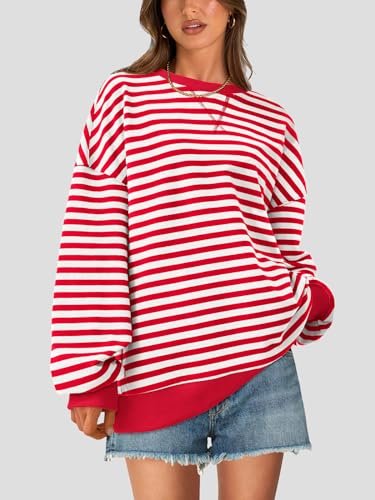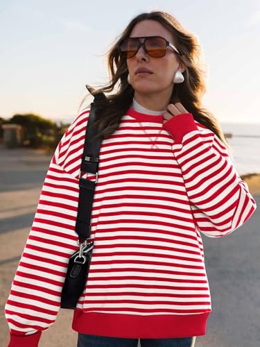 PRETTYGARDEN Womens Striped Oversized Sweatshirt Color Block Crew Neck Long Sleeve Casual Loose Pullover Top Y2K Clothes