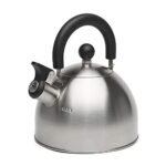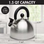 Primula Stewart Whistling Stovetop Tea Kettle Food Grade Stainless Steel, Hot Water Fast to Boil, Cool Touch Folding, 1.5-Quart, Brushed with Black Handle
