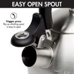 - EASY TO USE- This kettle will boil water in no time and features a flip-up whistling spout that easily opens when itβs time to pour.