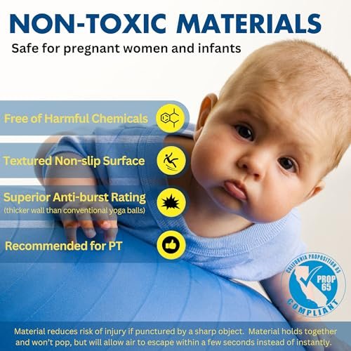 - ANTI BURST AND SLIP RESISTANT: A work out ball with sturdy PVC to withstand the most punishing workouts. This heavy duty stability ball is rated beyond 330 lbs of weight; safe as a pregnancy ball or birthing ball.