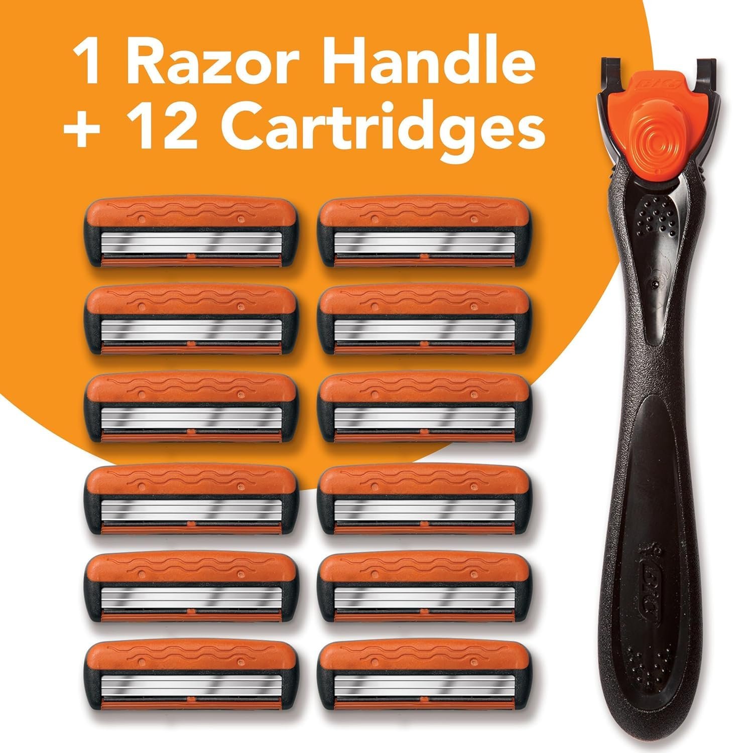 BIC Comfort 3 Men’s Refillable 3 Blade Razors, Long-Lasting Shave and Pivoting Head, 1 Handle and 12 Cartridges