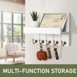 - 【RETRO WALL DECOR】 With antiqued finish enhance the authenticity of our key and mail holder for wall. Five decorative hooks on a weathered white key hanger hold dog leashes, purse, bags, coats, umbrella, jackets and more.