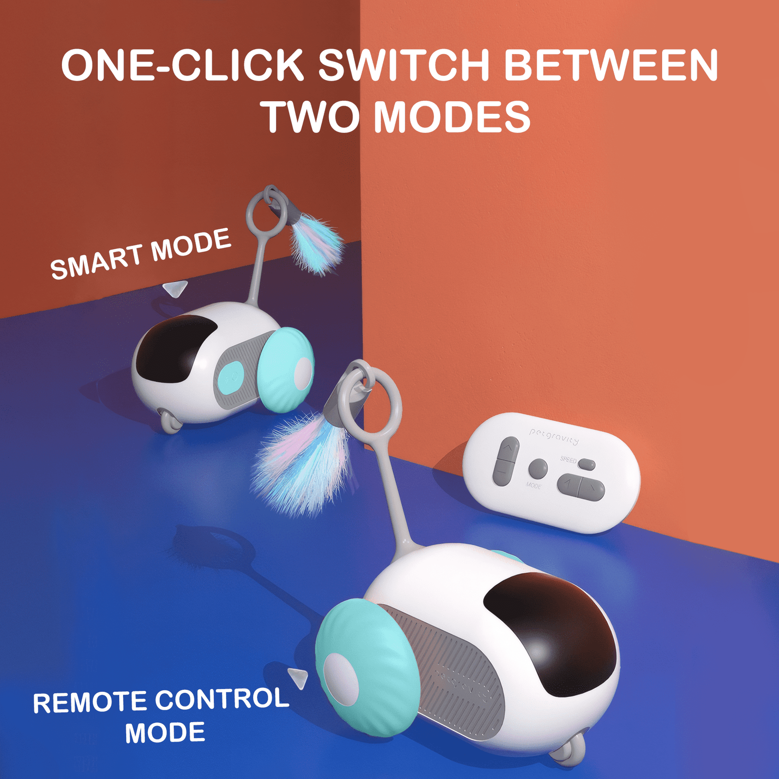 Risehigh Interactive Cat Toys for Indoor Cats 2-Speed Automatic Moving Remote Control Smart Cat Rechargeable Toy with Feathers, Blue