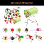 【21 PCS Value Pack Cat Toys】 : 21 pieces cat toys with a collapsible Cat Tunnel, Cat Teaser Wand, Interactive Feather Toy, Fluffy Mouse, Crinkle Balls and etc.This variety pack toys fits all cats needs,keep your cat interesting.Best Holiday and birthday gift for your cats.