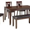 Signature Design by Ashley Bennox Dining Room Table and Chairs with Bench (Set of 6), Brown