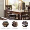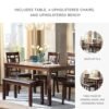 - 6 PIECE SET: Includes table, 4 chairs and a bench. Table measures 36″ W x 60″ D x 30.25″ H, each chair measures 17.75″ W x 21.75″ D x 38.25″, and bench measures 38.25″ W x 15.25″ D x 19″ H