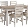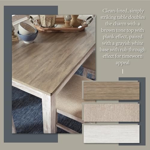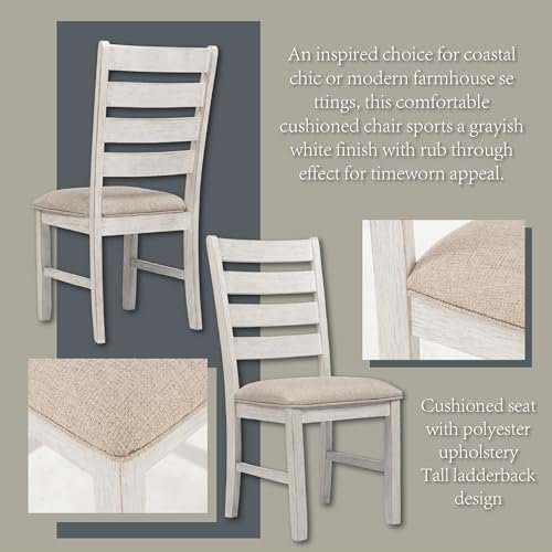 Signature Design by Ashley Skempton Cottage Dining 7 Piece Set – Rectangular Table & 6 Upholstered Chairs | Coastal Chic Meets Farmhouse, Whitewash