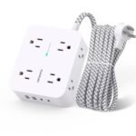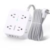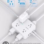 - 【Wall Mountable Extension Cord with Flat Plug】- The low-profile flat plug fits easily in tight spaces; and the right angle flat plug design prevents bottom plug blocking; the 5ft(included the plug) upgraded braided extension cord is very thick and has better current carrying capacity; the two mounting holes on back allows this power strip to be securely installed in various applications