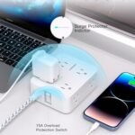 - 【Overload Surge Protection】- The surge protector power strip with overload protection protects your electrical appliances from lighting, surges or spikes. The minimum energy-absorbing capacity of 1080 Joules. Lighted on/off switch with integrated circuit breaker for overload protection of all outlets.(The "Surge Protected” indicator light on to show your devices are protected)