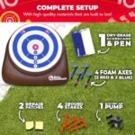 - 🎯 GIANT AXE THROWING - Take the fun up a notch with this mega-sized game! Grab a foam axe, aim for the dartboard, & rack up points. After 4 rounds, the player with the highest score wins! Great way to bring everyone together & show off your skills.