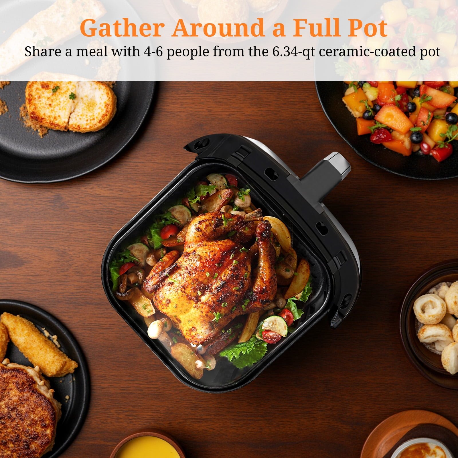 【6QT Family-Size Compact Design】Generous capacity fits meals for 4-5 people while maintaining a space-saving footprint that fits perfectly on any countertop – ideal for family dinners and entertaining guests.