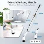 - 【Adjustable extension Rod】The electric shower scrubber equipped with extendable stainless-steel handle . The handle can freely extends from 26 inches to 45 inches easy to clean hard-to-reach places, without kneeling or bending over. Say Goodbye to Traditional Cleaning Tools.A new type of household cleaning tools that can change your life!