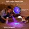 - Find invisible stains: UV flashlight helps detect food stains and pet urine stains on rugs, carpets, and clothes that are otherwise invisible to the naked Eye.