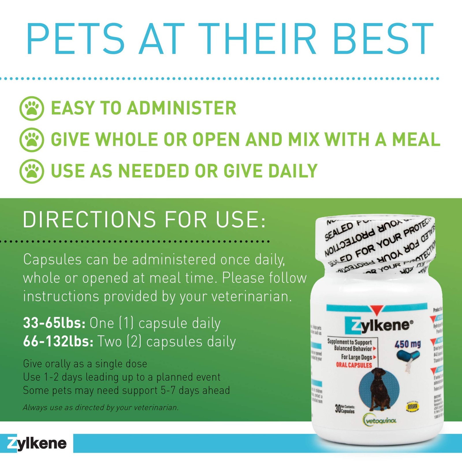 Vetoquinol Zylkene: Calming Support for Large Dogs (33-132 lbs), Reduces Anxiety & Behavior Issues for Boarding, Vet Visits & More