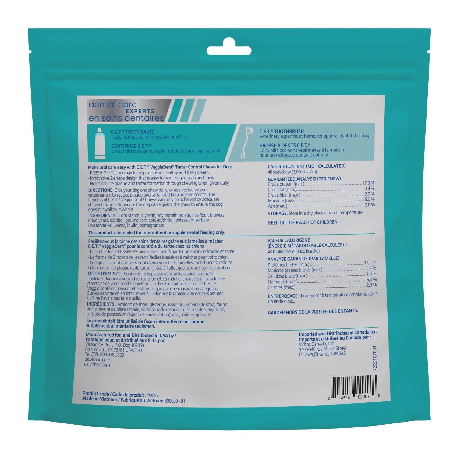 Virbac C.E.T.® VEGGIEDENT® FR3SH® Tartar Control Chews for Dogs with digestive health support, VOHC Approved, Medium 22-66lbs