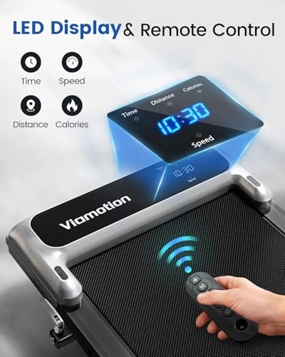 - LED Display and Real Speed Feedback: The clear display at the center of the device continuously tracks and shows your exercise duration, walking distance, walking speed and calorie consumption. Additionally, our compact walking pad features Real Speed Feedback, with an adjustable speed range of 0.6 to 3.8 mph