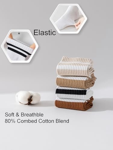 YUWELL Womens Striped Crew Socks, Cotton Cozy Casual Socks for Women 4 Pairs, Size 5-10