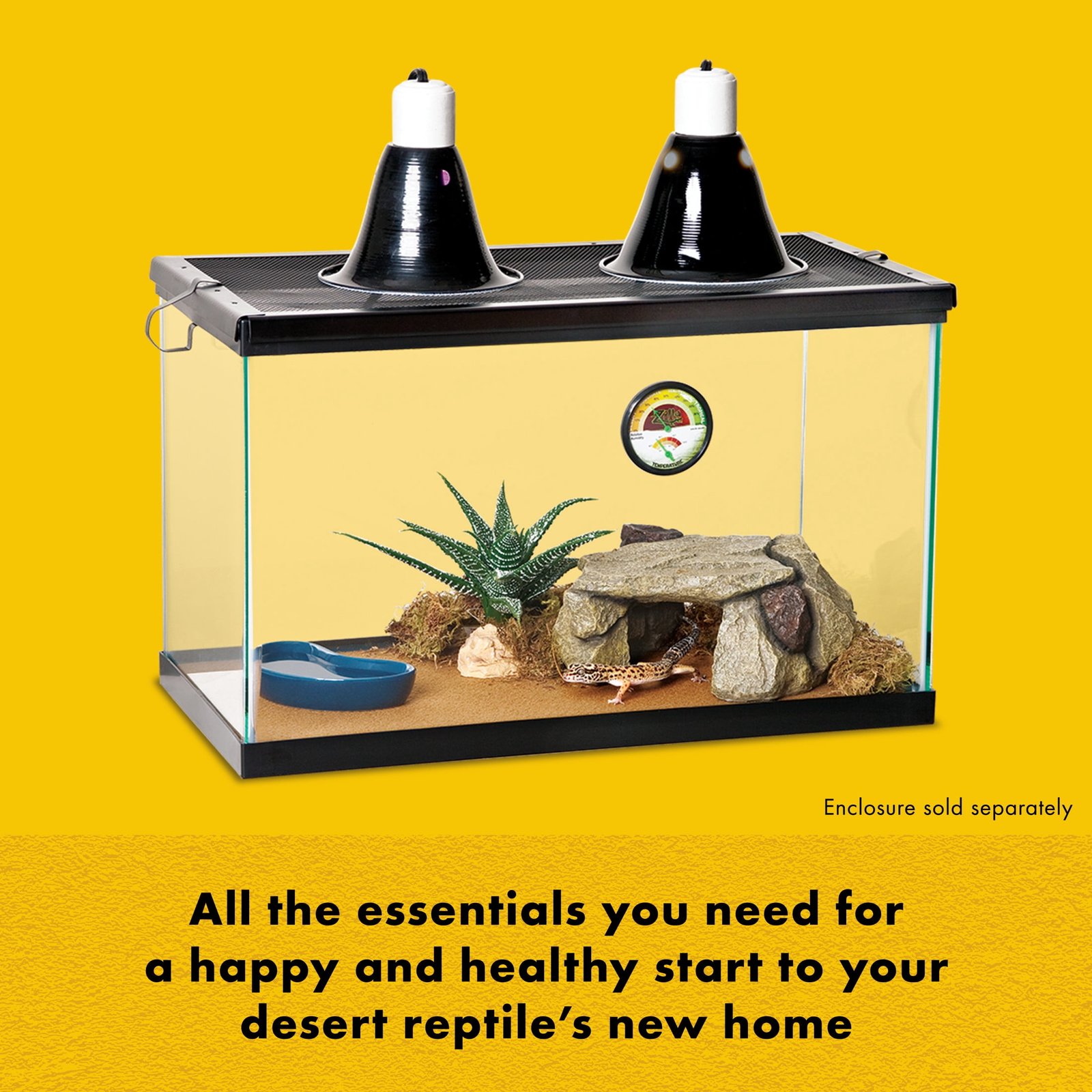 CREATE OPTIMAL HABITAT CONDITIONS and meet the unique requirements of juvenile desert-dwelling reptiles. Includes heating, lighting and a humidity & temperature gauge to maintain proper levels.