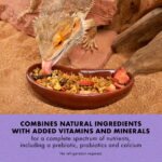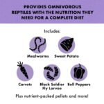 NATURAL WITH ADDED VITAMINS AND MINERALS for a balanced diet for omnivorous reptiles that includes mealworms, fruit and vegetables, as well as nutrient-packed pellets.